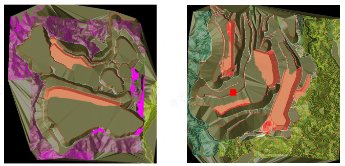 圖1-利用DIMINE構建包含地形、礦體、邊坡等要素的三維實體模型